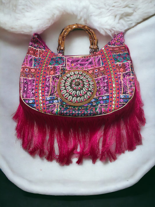 Bohotasche in pink mit Fransen