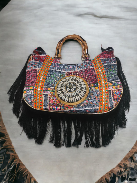 Bohotasche in schwarz mit Fransen