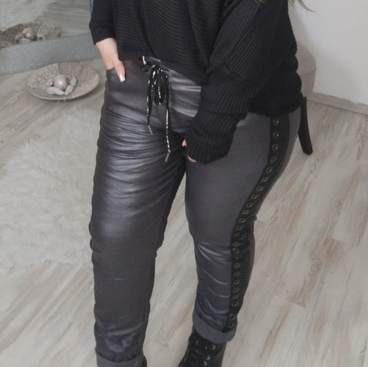 Kette Boho grau mit Glitzeranhänger und Bommeln lang