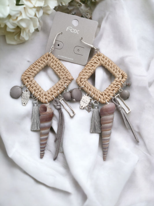 Ohrringe Ibiza Style Cordel in grau und eckig mit Muschel