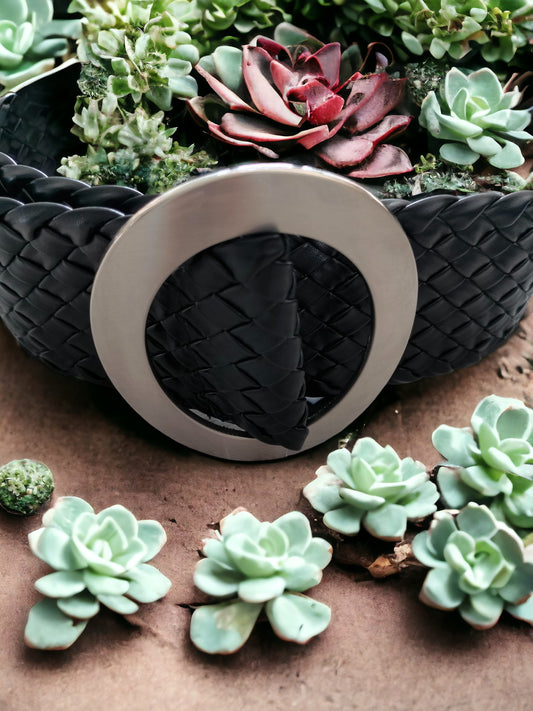Gürtel schwarz mit gewebtem Lederimitat und Schnalle