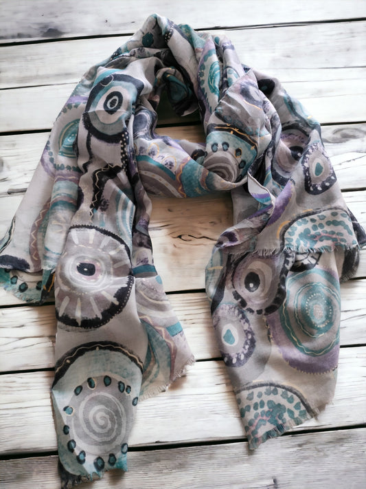 AusverkauftViskose Schal grau mit bunten Kreisen