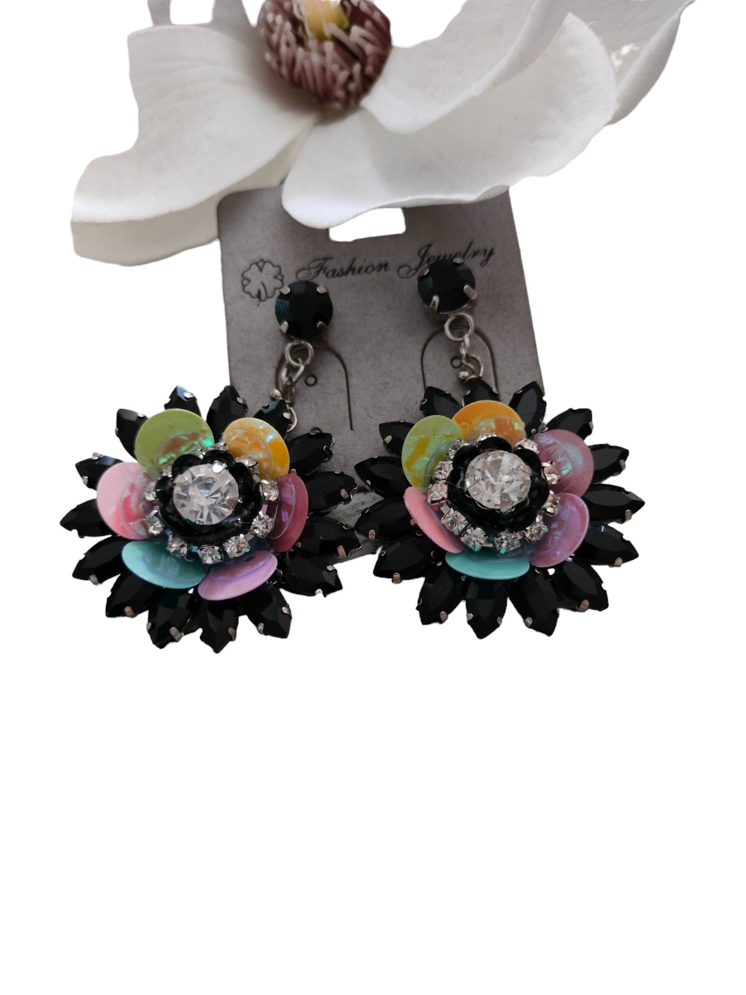 Blumenohrringe schwarz mit bunten Blüten