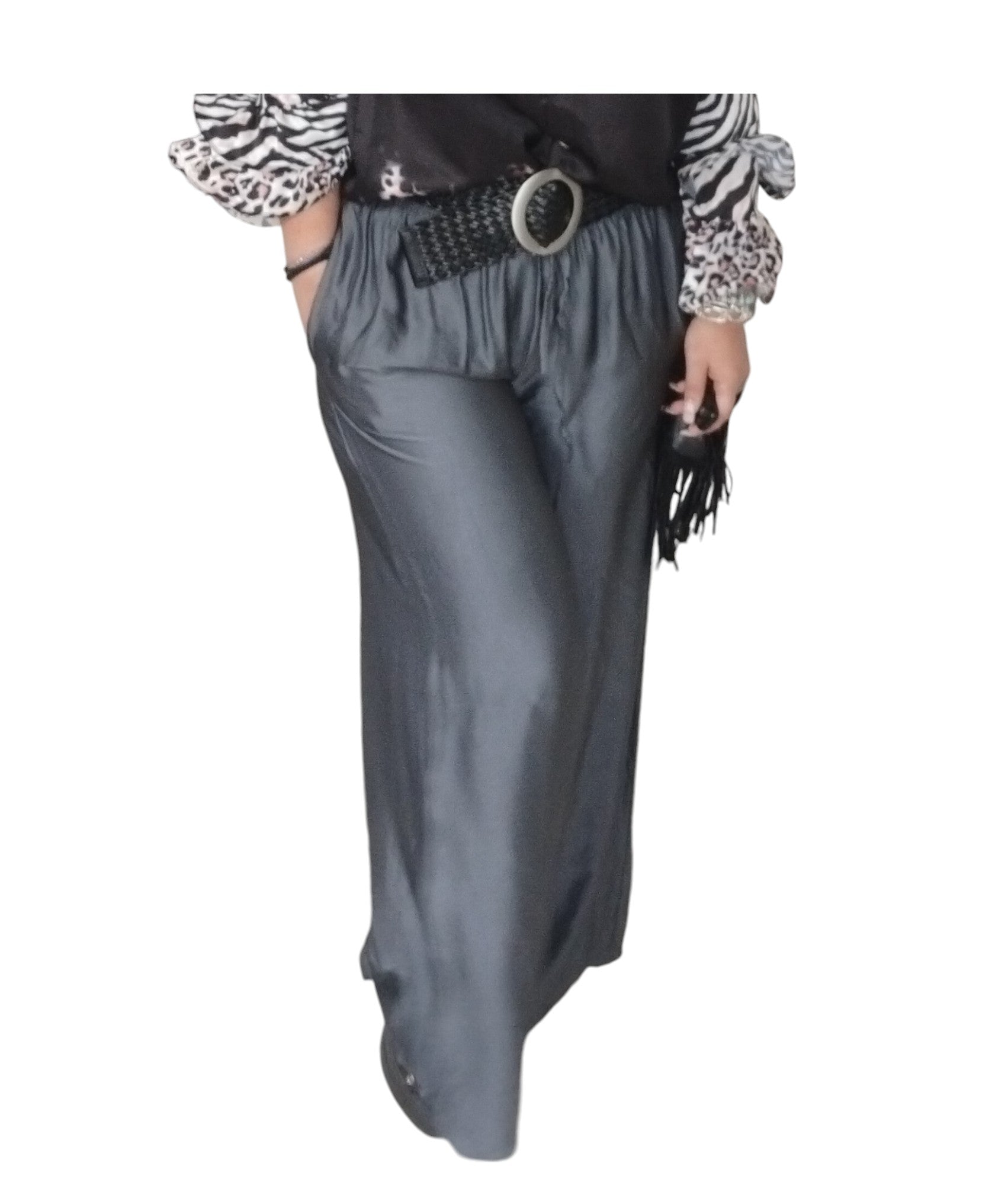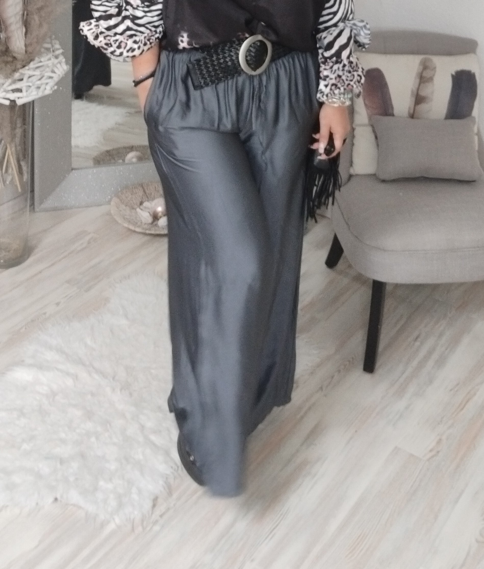 Entspann dich in dieser coolen grauen Satinhose. Der weite Schnitt und die Einheitsgröße von ca.36-42 bieten höchsten Komfort und Flexibilität. Ob elegant oder lässig, diese Hose ist immer eine gute Wahl.