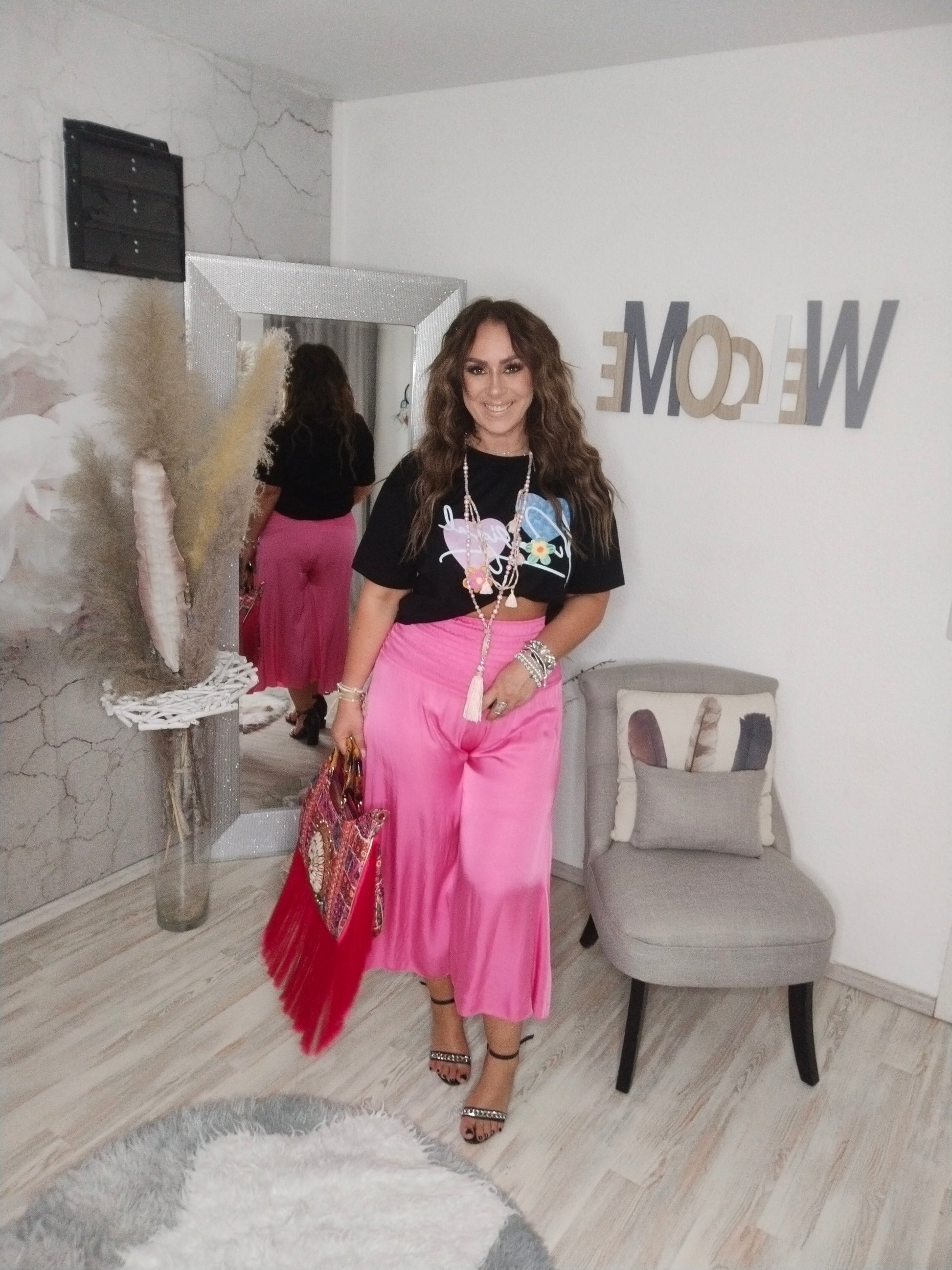 Bring etwas Farbe in deinen Kleiderschrank mit unserem schwarzen T-Shirt mit gehäkelten Blumenapplikationen! In den Größen 36-42 erhältlich und mit herzigen Details versehen, ist es das perfekte Outfit für jeden Tag. Lass dich von der Leichtigkeit und dem Charme dieses einzigartigen Shirts verzaubern!